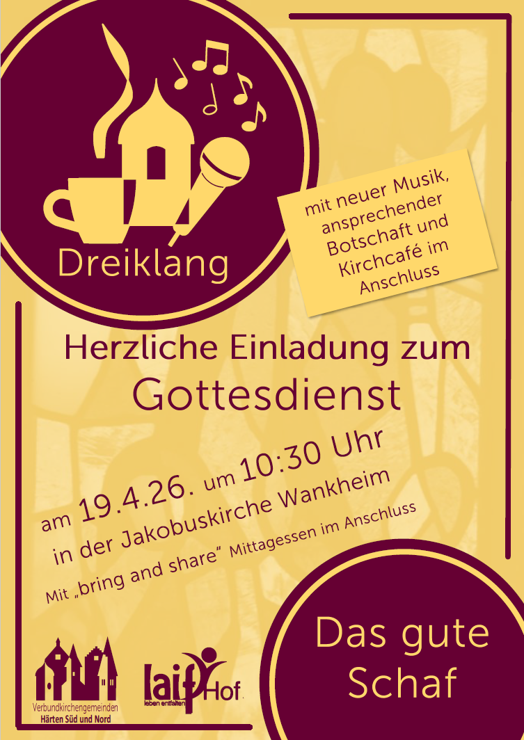 Das monatliche Gottesdienstformat der Evangelischen Verbundkirchen- gemeinde Härten Süd und laifHof e.V mit neuer Musik, ansprechender Botschaft und anschließendem Treffpunkt im Chorraum oder bei schönem Wetter draußen vor der Kirche, bei Kaffee und Gebäck.