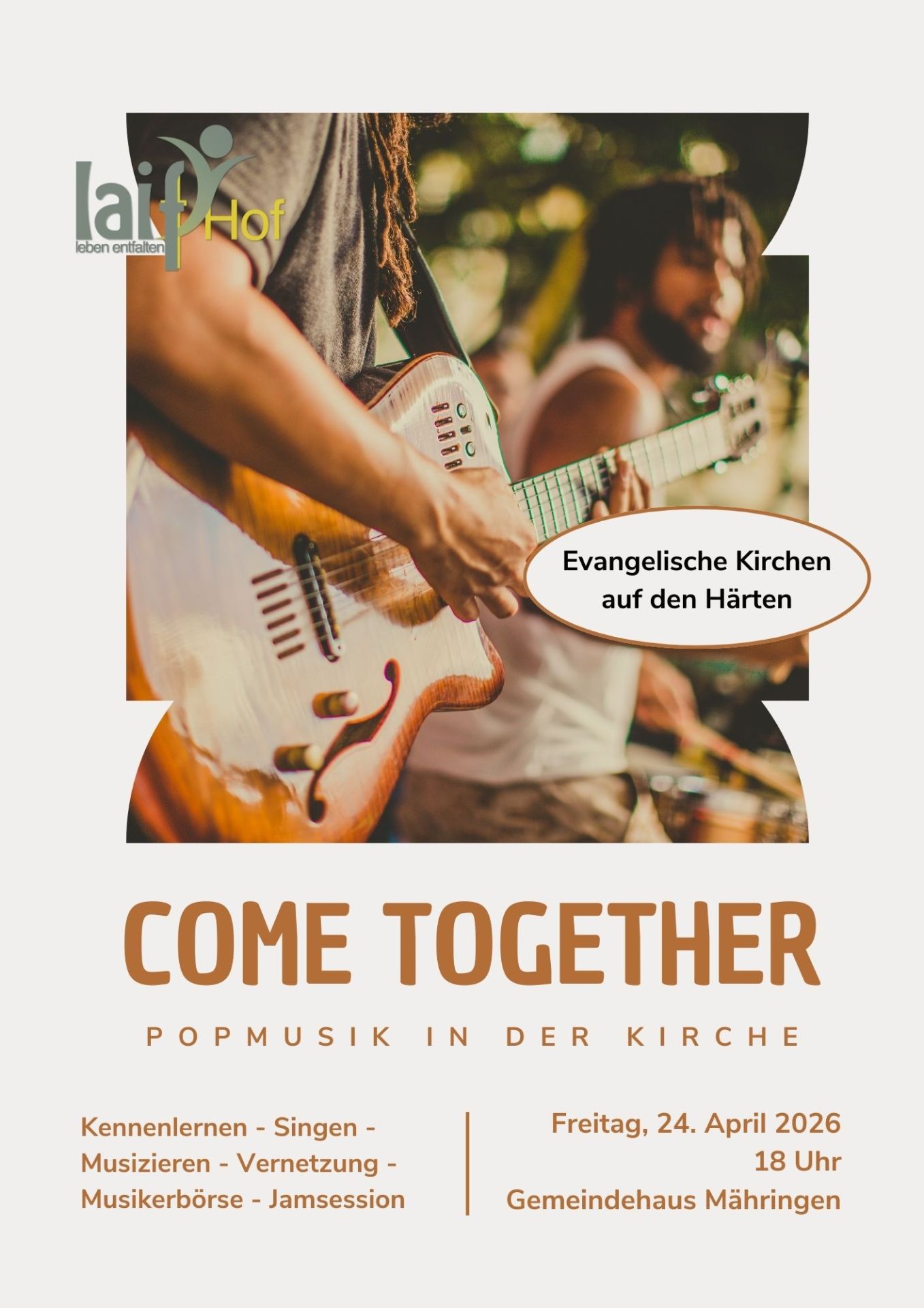Am Freitag 24. April 2026 findet um 18 Uhr im Gemeindehaus in Mähringen ein Treffen statt für alle, die sich für Popularmusik in der Kirche engagieren. Egal, ob Du ein Instrument spielst oder singst, bei der Tontechnik oder der Planung von Konzerten und Gottesdiensten auf den Härten aktiv bist, oder erst neu einsteigen möchtest: Herzliche Einladung zu diesem Abend voller Musik, Begegnung und leckerem Essen! Gebt die Einladung auch gerne weiter!
