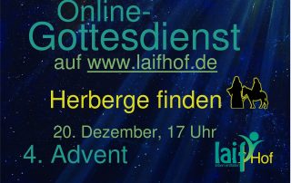 Am 20.12.2020 hat in Zusammenarbeit mit der Ev. Kirchengemeinde Wankheim ein digitaler Gottesdienst zum 4. Advent stattgefunden, den Sie hier noch einmal anschauen können. Im Mittelpunkt stehen die Krippenfiguren der Wanderkrippe, die nach verschiedenen Wankheimer Gastgebern, Herberge auf dem laifHof fanden. Die Predigt wurde von Pfarrer Johannes Reinmüller gehalten. https://youtu.be/-WIcsmNvYmg
